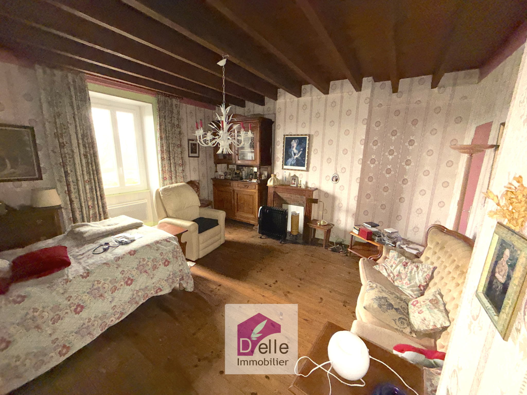 A l'étage: deux chambres, un dressing et une salle de bains avec WC ainsi qu'un grenier au dessus.